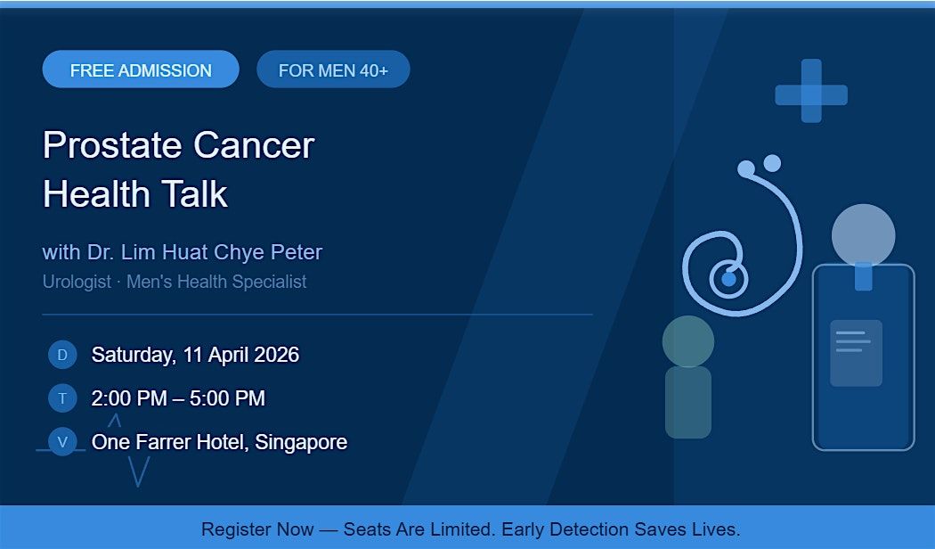 This April, take the most important step for your health and join us for a free, expert-led talk by Dr. Lim Huat Chye Peter — one of Singapore's most respected urologists and founder of the Society for Men's Health (Singapore).