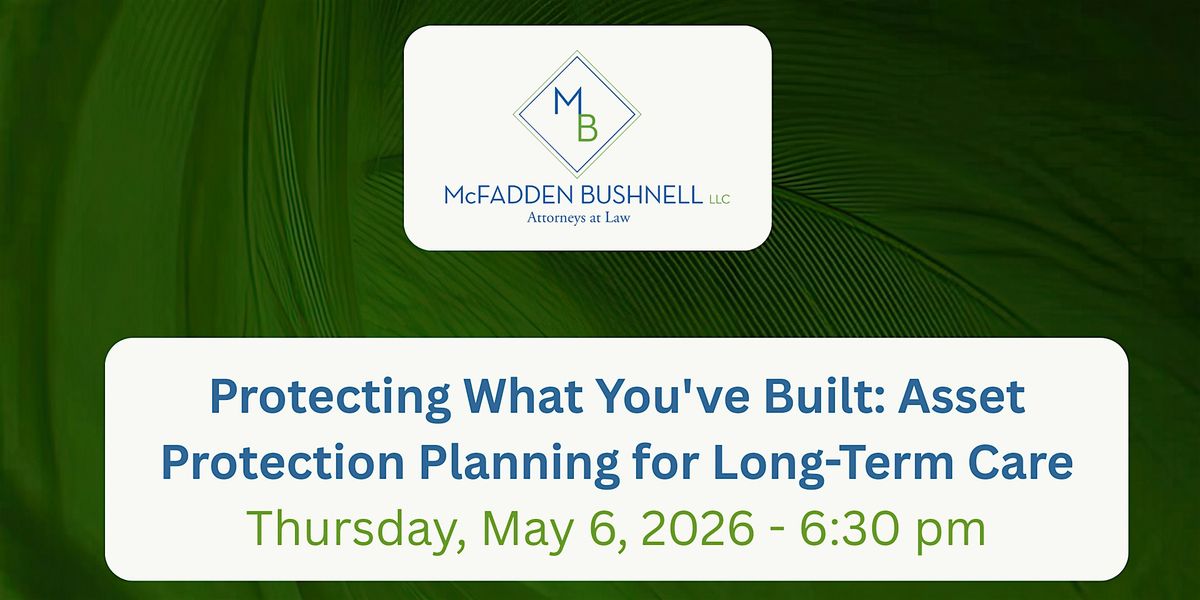 Join McFadden Bushnell for an informative evening designed to help seniors and their families understand one of the most critical — and often overlooked — areas of elder law: protecting your assets from the potentially devastating costs of long-term care.