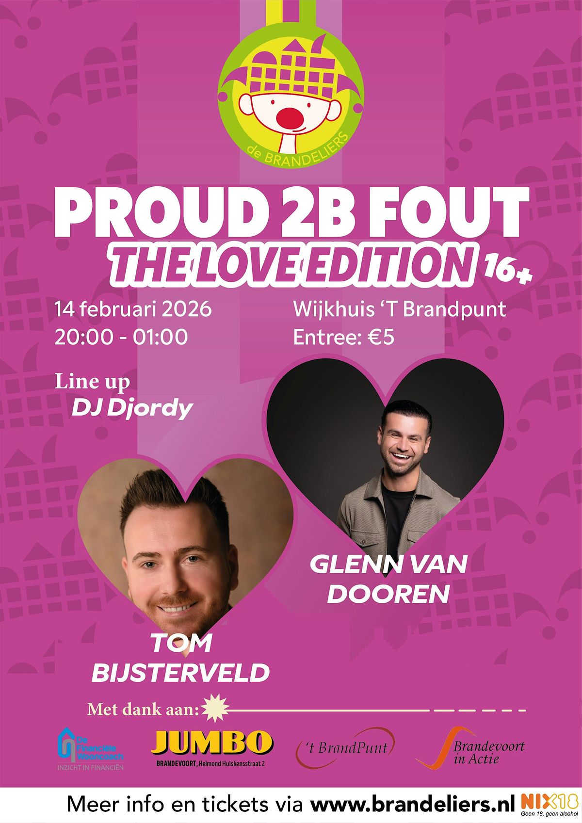 Laat je zorgen varen, trek je dancing shoes aan en beleef een avond vol plezier en gekkigheid. Proud 2B Fout is de plek waar alles mag en niets moet. En met optredens van Tom Bijsterveld en Glenn van Dooren belooft dit een avond te worden die je nooit meer vergeet! Jij komt toch ook? 🎊