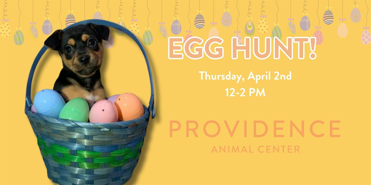 Hop on over to Providence Animal Center for a paws-itively adorable event on Thursday, April 2nd! We’ll be hosting a special Kid’s Egg Hunt in our pavilion, complete with a few extra special guests—puppies! Plus, keep your eyes peeled for a surprise guest who will be hopping over to say hii! It's a day full of tail-wagging, treat-filled fun, and plenty of surprises for the whole family. Come join the fun and make some lasting memories with us and our adorable animals!