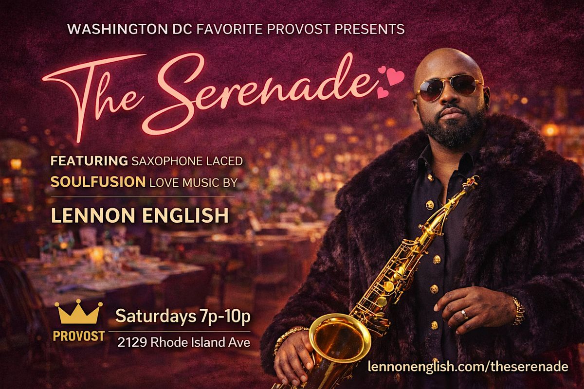 Greetings Earthlings, Join us for "Provost Presents... The Serenade," a night of saxophone-laced Soulfusion Love Music by Lennon English