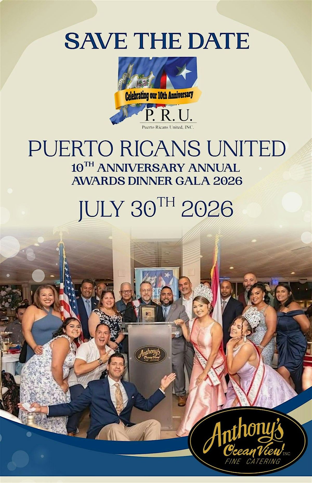 Join Puerto Ricans United (PRU) on Thursday, July 30th, 2026, from 6:00 PM - 11:00 PM, at Anthony's Ocean View as we celebrate our tenth anniversary and our 2026 honorees!