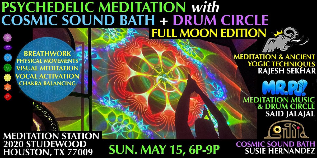 We are excited to welcome you to a ?FULL MOON Edition of Psychedelic Meditation with Cosmic Sound Bath, Drum Circle + Visual Immersion on SUNDAY, MAY 15 at our beautiful new venue in The Heights!
