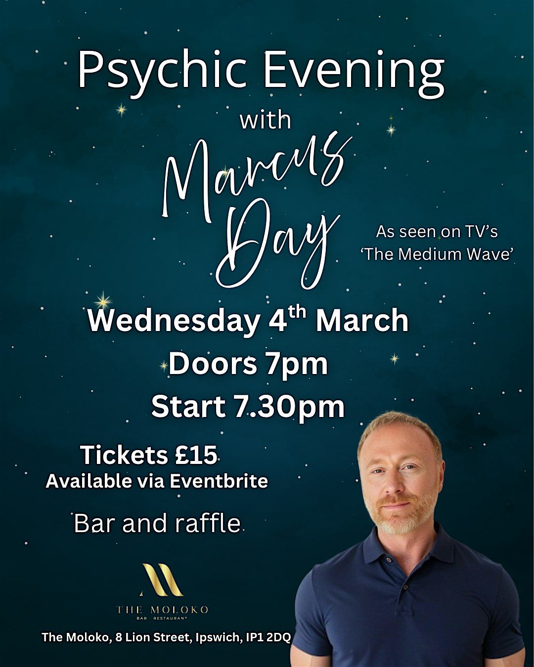 Ready for a night full of mystery and insight? Come experience the magic in person with Marcus Day, a gifted psychic who’ll guide you through an unforgettable evening. Expect to be amazed as Marcus taps into energies and shares messages just for you!