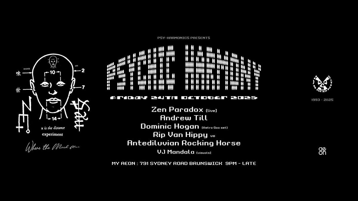 Established in 1993 Psy-Harmonics record label and it's artists were an integral part of building the sonic landscape within the vast electronic music spectrum throughout Australia and beyond, which we all know and love now. Come celebrate 32 years of diverse musical evolution & culture.