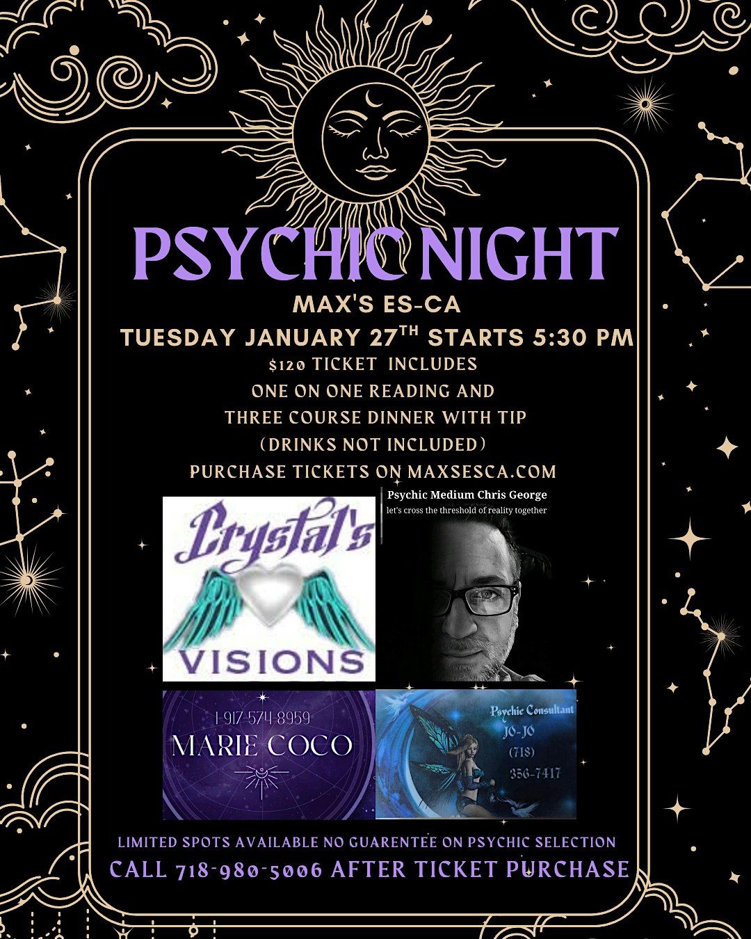 Come join us at Max's Es-ca for an evening filled with mystery and insight. Get ready to uncover secrets and explore the unknown on January 27, 2026 at 5:30 PM (Eastern Time).
