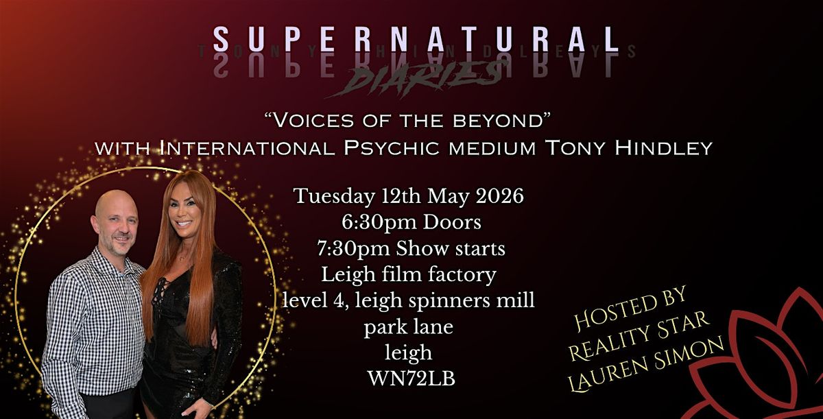 Join internationally renowned psychic medium Tony Hindley for a powerful and uplifting Voice of the Beyond clairvoyant evening. Experience an unforgettable night as Tony connects with the spirit world, delivering heartfelt messages of love, guidance, and reassurance.