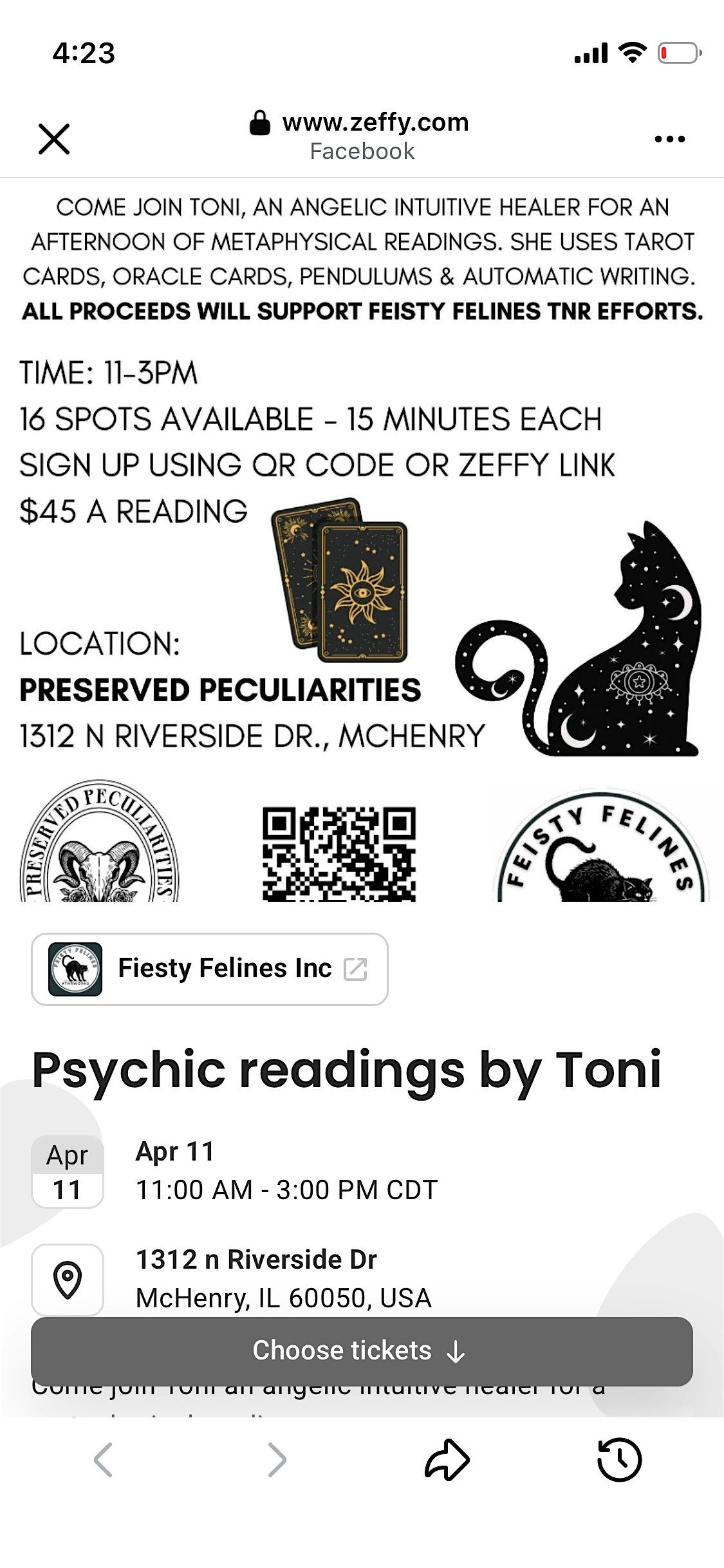 Feisty felines inc is teaming up with Toni to do a psychic reading event at preserved peculiarity shop in Mchenry rescue benefit