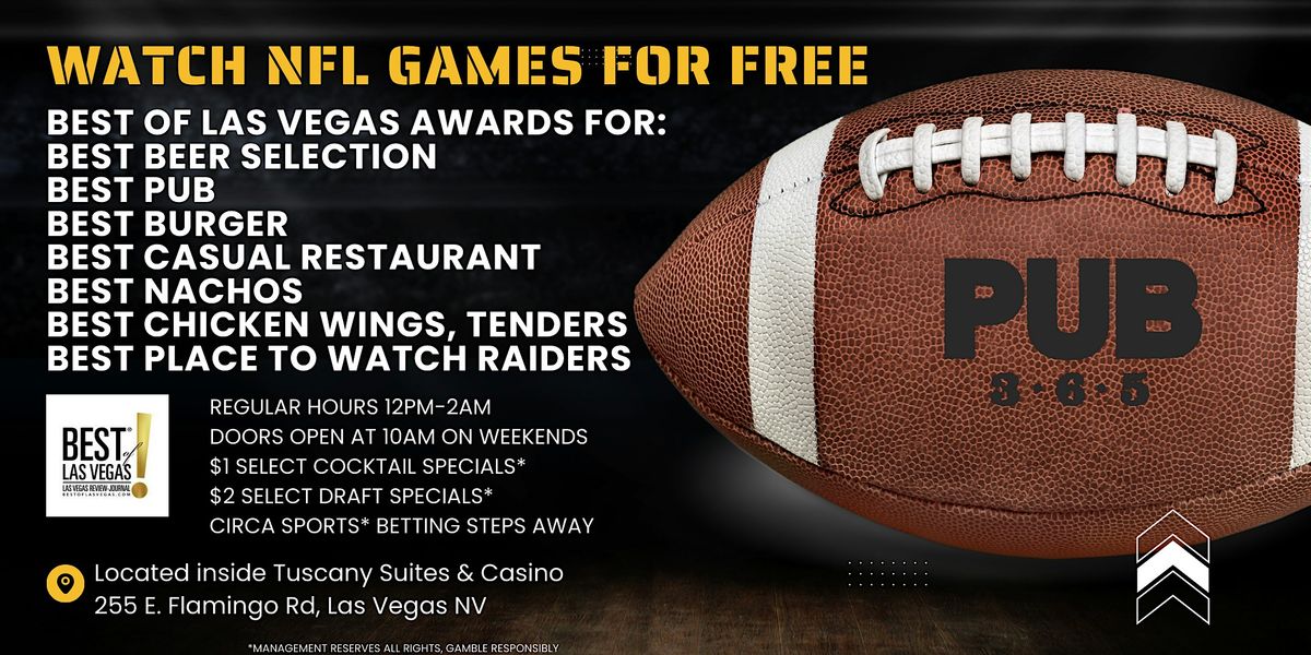 š When: Every NFL game day! š Where: Pub 365 ā 255 E Flamingo Rd š° Entry: FREE! Just bring your team spirit!
