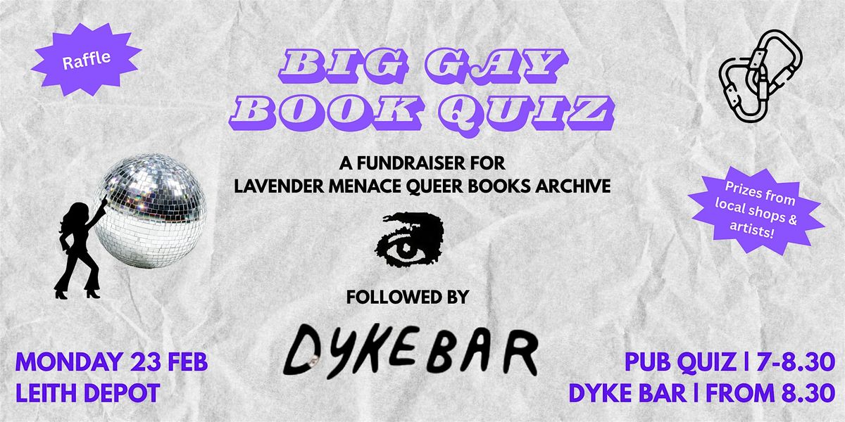 Lavender Menace volunteers will host a big gay pub quiz, with questions themed around LGBTQ+ books, Edinburgh's queer scene, and other queer media. We'll also be running a raffle with amazing prizes from local organisations and artists!