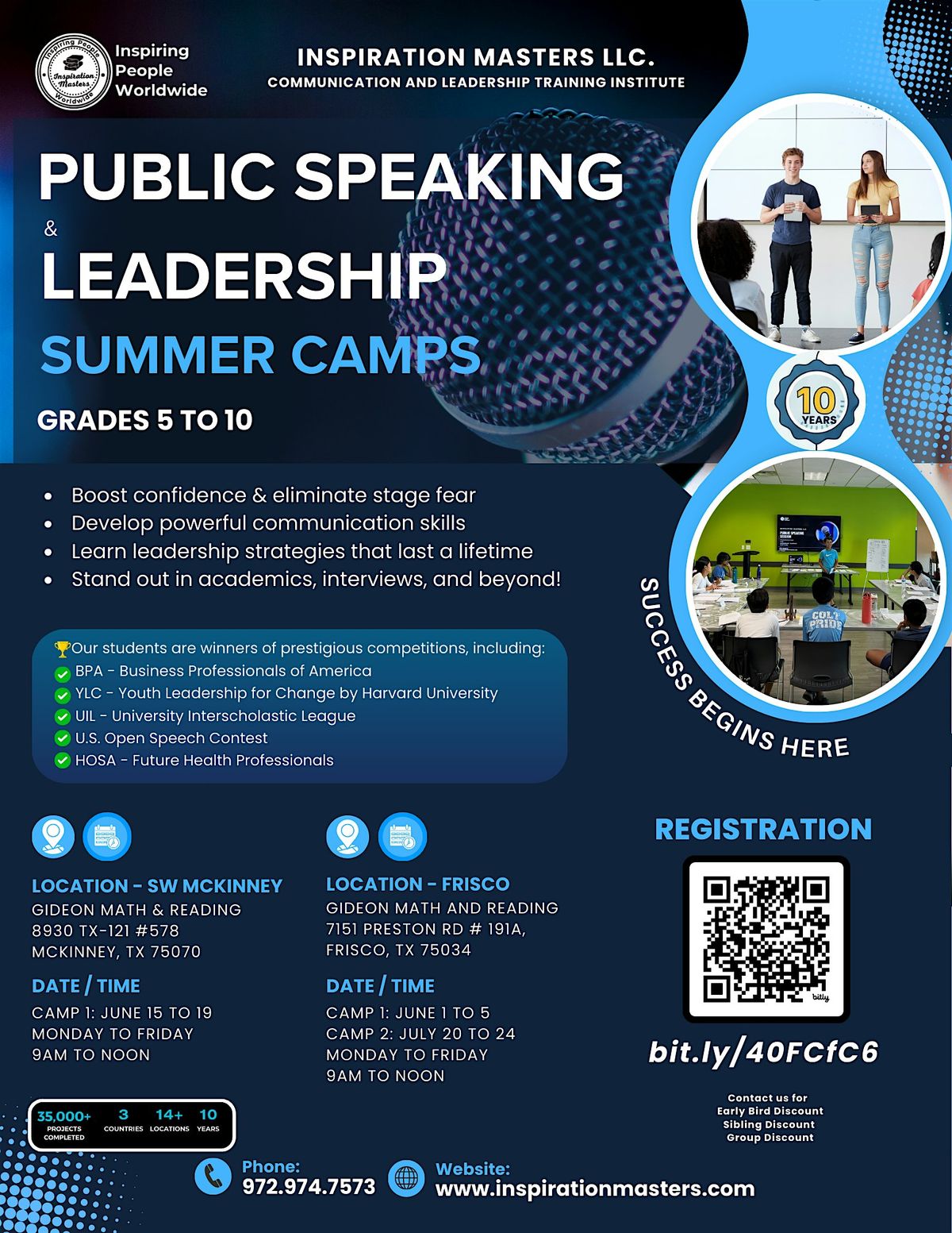 Public Speaking and Leadership Summer Camps in Frisco, Plano, McKinney, Irving, Coppell, Celina, Southlake, Lewisville, Prosper, North McKinney, Allen, Carrollton, Katy, and Richmond