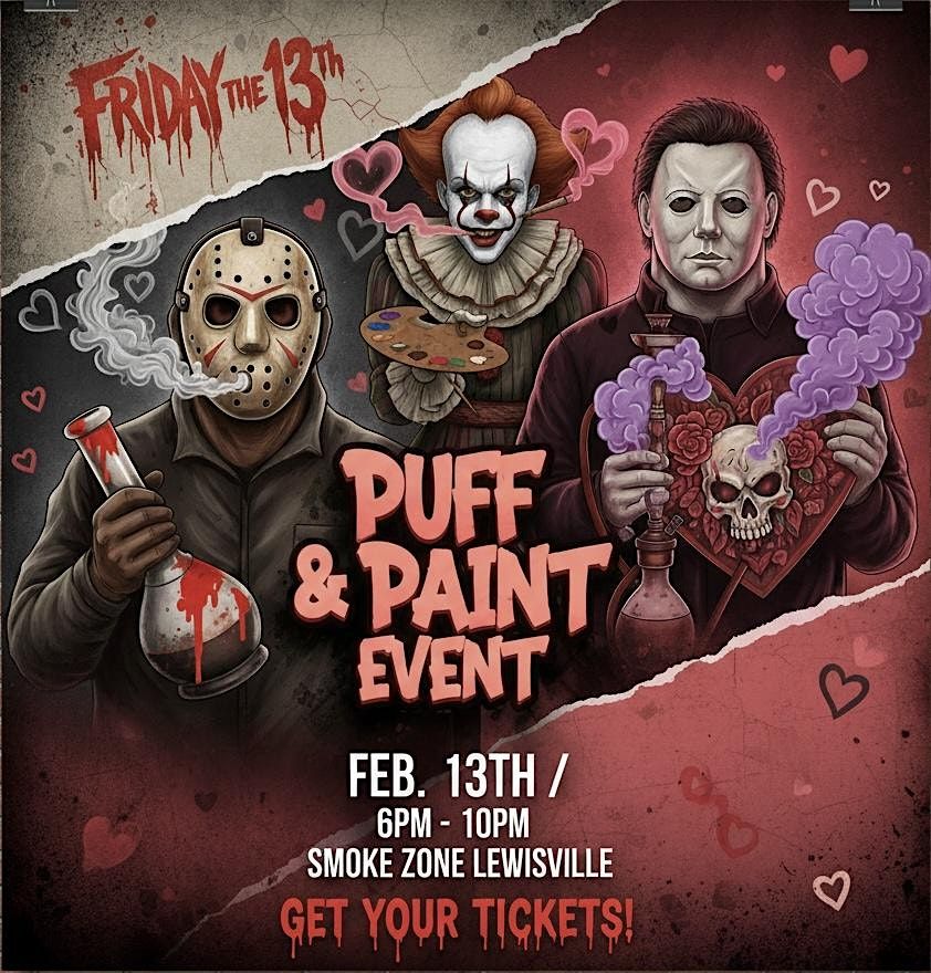 Forget the typical candlelit dinner. This Valentine’s season, we’re ditching the roses for hockey masks and mixing romance with a little bit of mayhem. Join us for a one-of-a-kind Friday the 13th themed Puff & Paint experience!