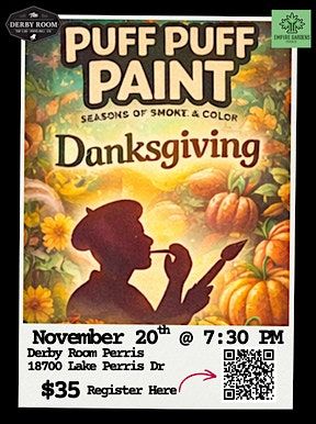 Whether you’re joining us for a seasonal theme or a classic Puff Puff Paint night, all events are about expression, not perfection. Come solo, bring a date, or roll in with friends and enjoy a space where everyone is welcome and creativity is encouraged.