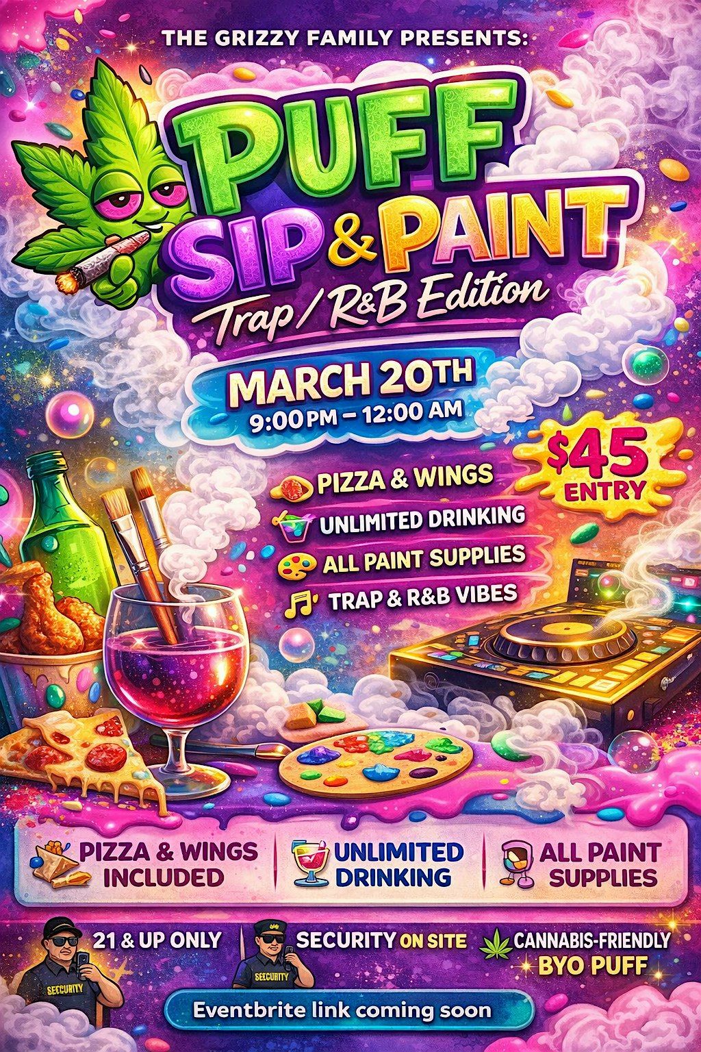 Get ready for a super chill and creative night at our Puff Puff Paint Party! Join us in person for an evening filled with colorful vibes, great company, and easy-going painting sessions. Whether you're a pro or just looking to have some fun, this is the perfect spot to relax, unleash your inner artist, and connect with cool people. Grab your brushes, bring your good vibes,all you can eat and drink and let's make some awesome art together!
