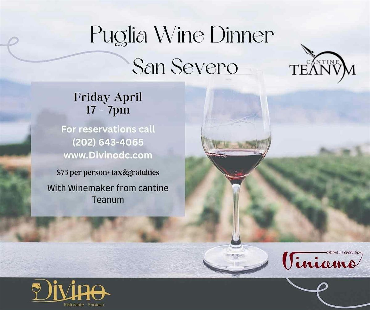 We’re happy to welcome Teanum Winery, one of Southern Italy’s most dynamic winemakers, for an unforgettable Pugliese evening at Divino.