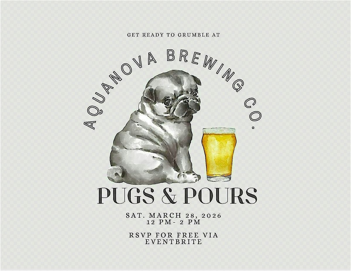 Enjoy some pours at Aquanova while pugs take over the brewery! Enjoy some tasty eats and treats from 905 Hotbox Pizza and the Paw Lab too!