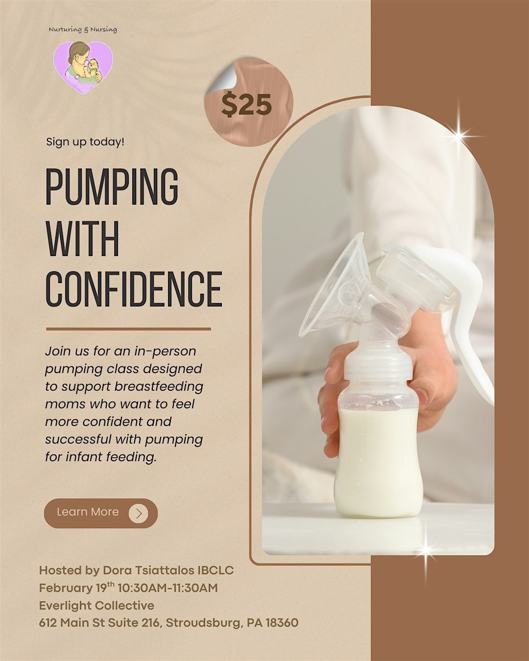 Welcome to Pumping with Confidence! Join us on February 19th, 2026 at 10:30 AM for an interactive event where you can learn all about how to troubleshoot issues like output, comfort, and schedules, flange sizing, and practical tips to make pumping work for your lifestyle. Whether you’re returning to work, building a freezer stash, or exclusively pumping, you’ll leave with helpful strategies and personalized guidance in a supportive environment.