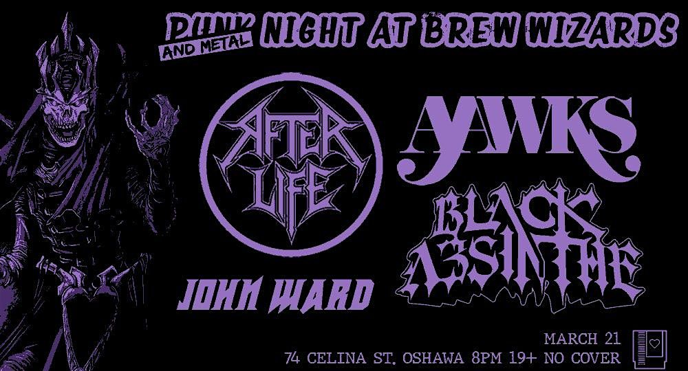 Free punk (and metal) show featuring Afterlife, AAWKS, Black Absinthe and John Ward. Inclusive show for music fans of all types.