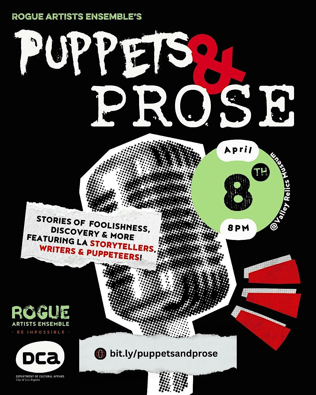 Puppets & Prose started in 2020 as a national collaboration between Rogue, the LA Guild of Puppetry and PEN America which resulted in 39 short films that brought together visual artists and emerging writers across the country. It is now an in-person Los Angeles salon.