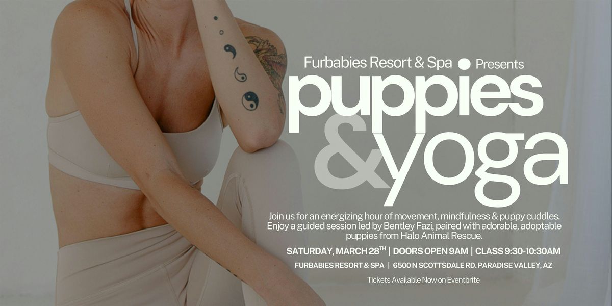 Get Ready for the cutest workout of your life! Join us for Puppies & Yoga at FurBabies Resort & Spa featuring adoptable puppies from Halo Animal Rescue and an energizing flow led by instructor Bentley Fazi.