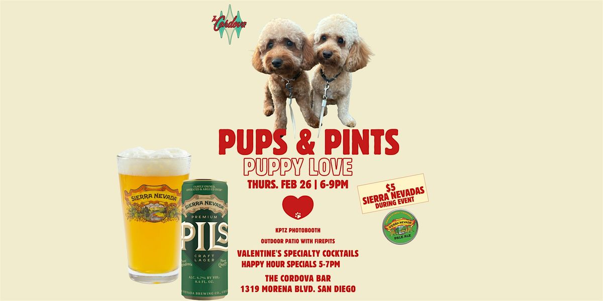 Join us for our PUPPY LOVE edition of Pups & Pints on the patio! Enjoy $5 pours of Sierra Nevada from 6-9PM. Special goodie bags and treats for the pups. Valentine's Cocktail Specials. Happy Hour 5-7PM. And capture the moment with your furry ones and friends with KPTZ Photobooth!