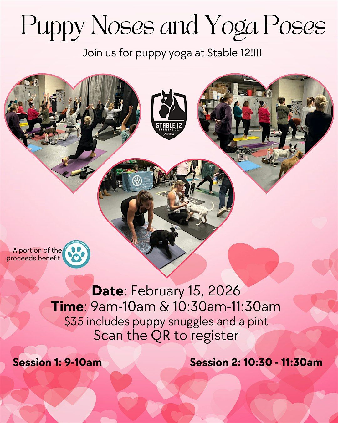 Join us for Puppy Yoga at Stable 12 Brewing Company with To Love a Canine (TLC) rescue! Get ready to downward dog with adorable furry friends by your side. This event is the paw-fect way to relax, unwind, and get some puppy cuddles. Whether you're a yoga pro or a beginner, everyone is welcome to join in on the fun. Don't miss out on this unique and heartwarming experience!