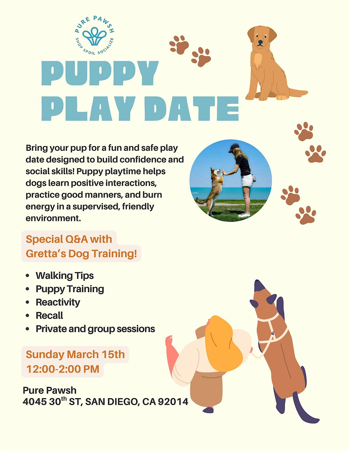 PLUS — don’t miss a special Q&A with Gretta’s Dog Training! 🐶🎓 We’ll cover: 🐾 Walking tips 🐾 Puppy training 🐾 Reactivity 🐾 Recall 🐾 Private & group sessions