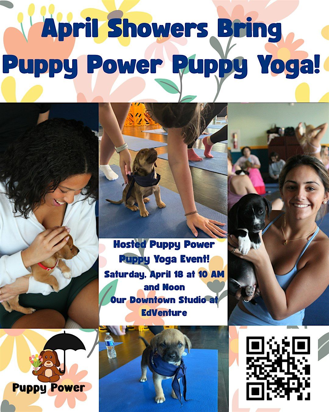 After a busy March wraps this weekend, we are back with TWO SESSIONS of 🐶🔋🧘♀️- same great puppy yoga, with a touch of extra 🐶🩵☔️🌸. Come enjoy with a significant other, friends, family or solo!
