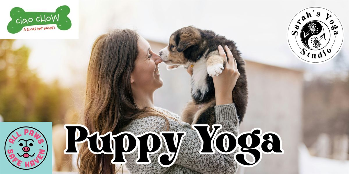 Puppy Yoga at Ciao Chow with Sarah's Yoga Studio