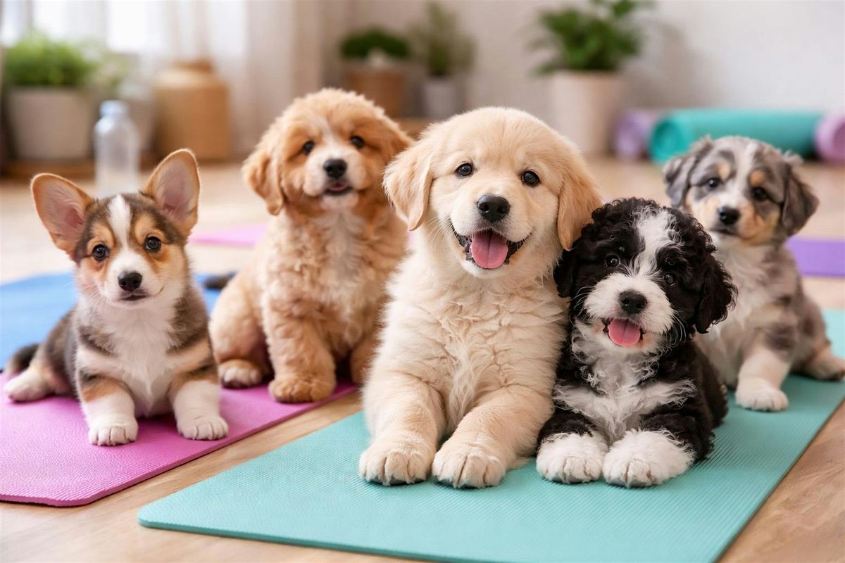 The one-hour Puppy Yoga class takes place on Sunday, January 25 at 3:00 PM, with puppies present only during the class. Afterward, guests will enjoy 15 minutes for tea, photos, cuddles and relaxation (puppies will be present at this time!).