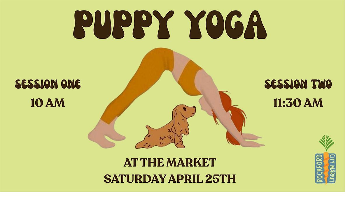 Welcome to Puppy Yoga at The Market! Join us for a unique yoga experience surrounded by adorable adoptable puppies from Noah's Ark Animal Sanctuary at Rockford City Market. This in-person event combines the relaxation of yoga with the joy of furry friends. Whether you're a yoga pro or a beginner, this event is perfect for everyone. Don't miss out on the opportunity to de-stress and have fun with cute puppies. Get ready to downward dog with some four-legged friends!