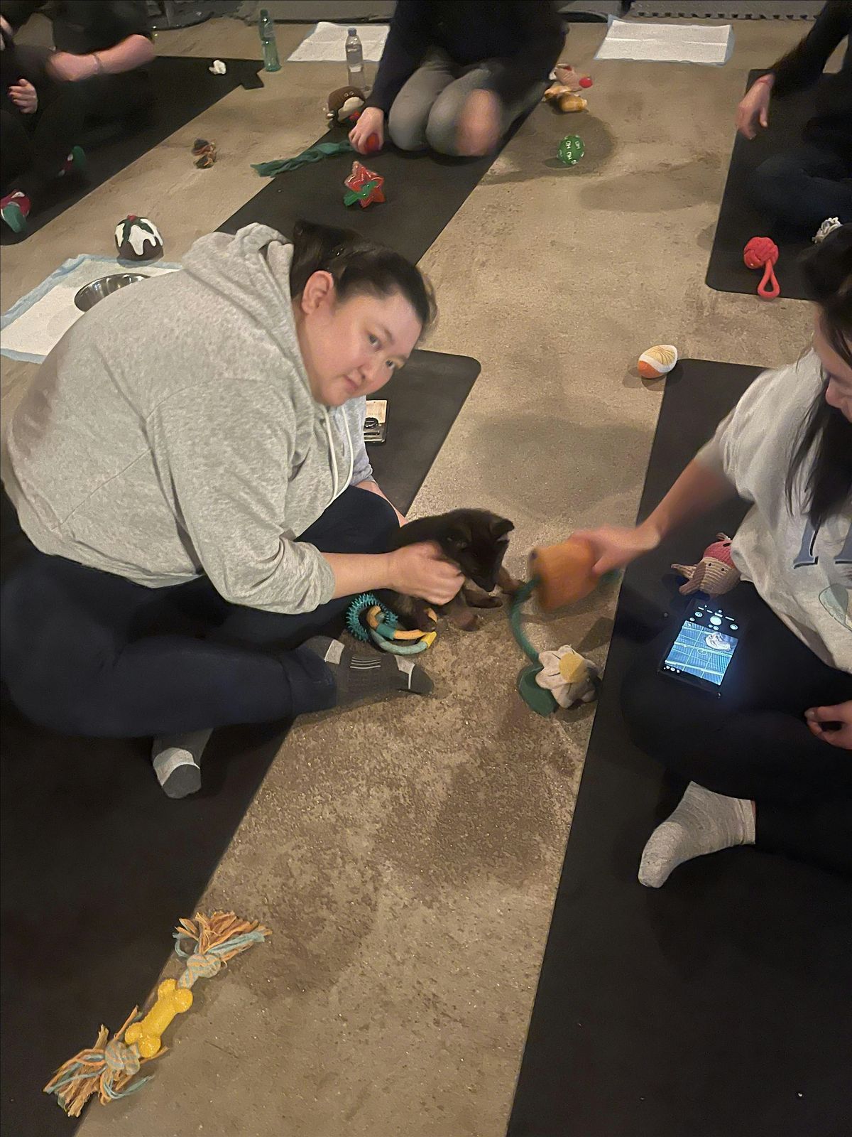 In the first 3 months of a puppies life it is very important to expose your puppies to different people, new environments, sounds and smells. Puppy yoga is a safe and fun space that aids with our puppies socialisation.
