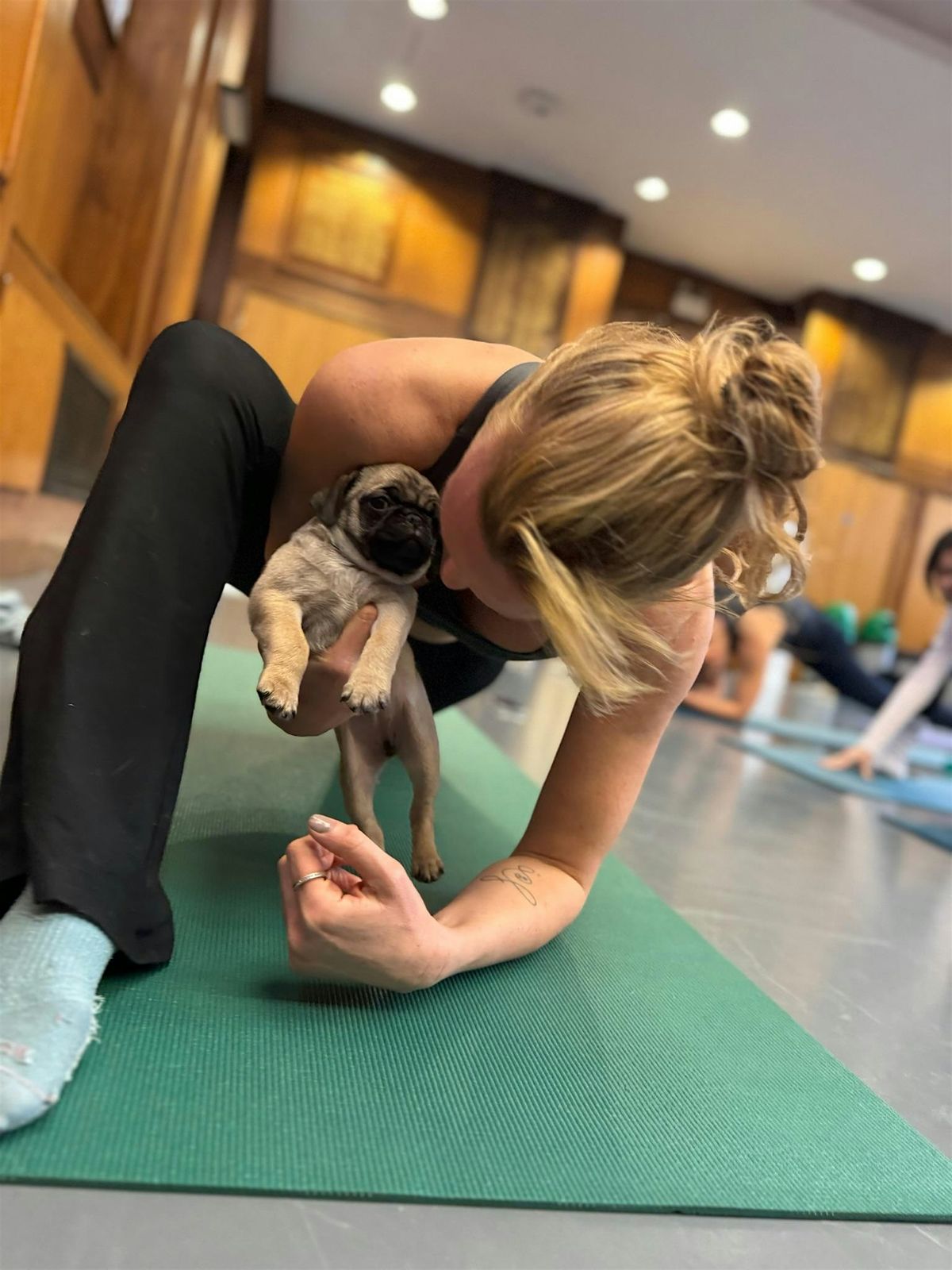 When you cuddle a puppy, it has psychological benefits, increasing the happy hormones: oxytocin and serotonin to the brain and lowering cortisol levels (the negative hormone) similar to when you embrace a new-born baby for the first time. This in turn with the yoga, will leave you feeling physically , mentally and emotional balanced and fulfilled.