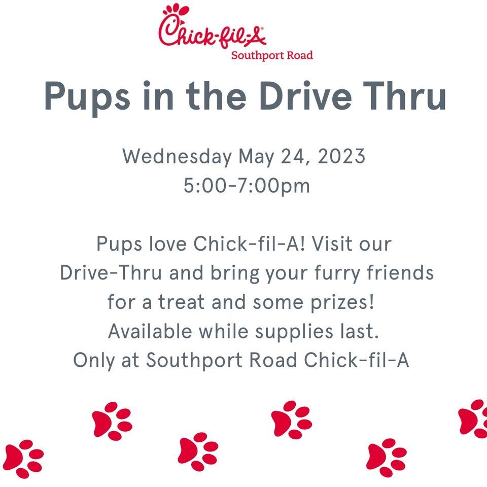 Pups love Chick-fil-A! Visit our Drive-Thru and bring your furry friends for a treat and some prizes!