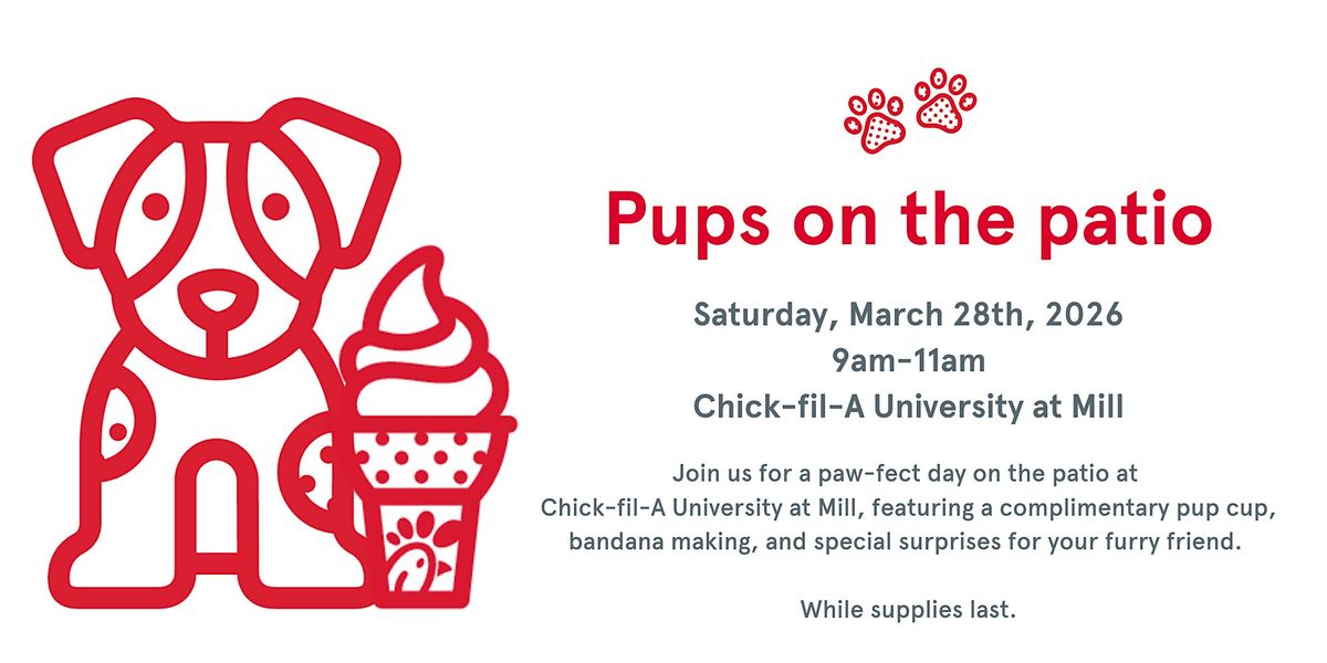 This paw-some event features bandana decorating, where you can create a custom look for your pup, an adorable photo backdrop for capturing pictures with your pet, and a special goodie bag for both you and your dog! It’s the perfect outing for dog lovers to enjoy some Chick-fil-A breakfast, get creative, and make sweet memories with your furry friends — we can’t wait to see you and your pup there!