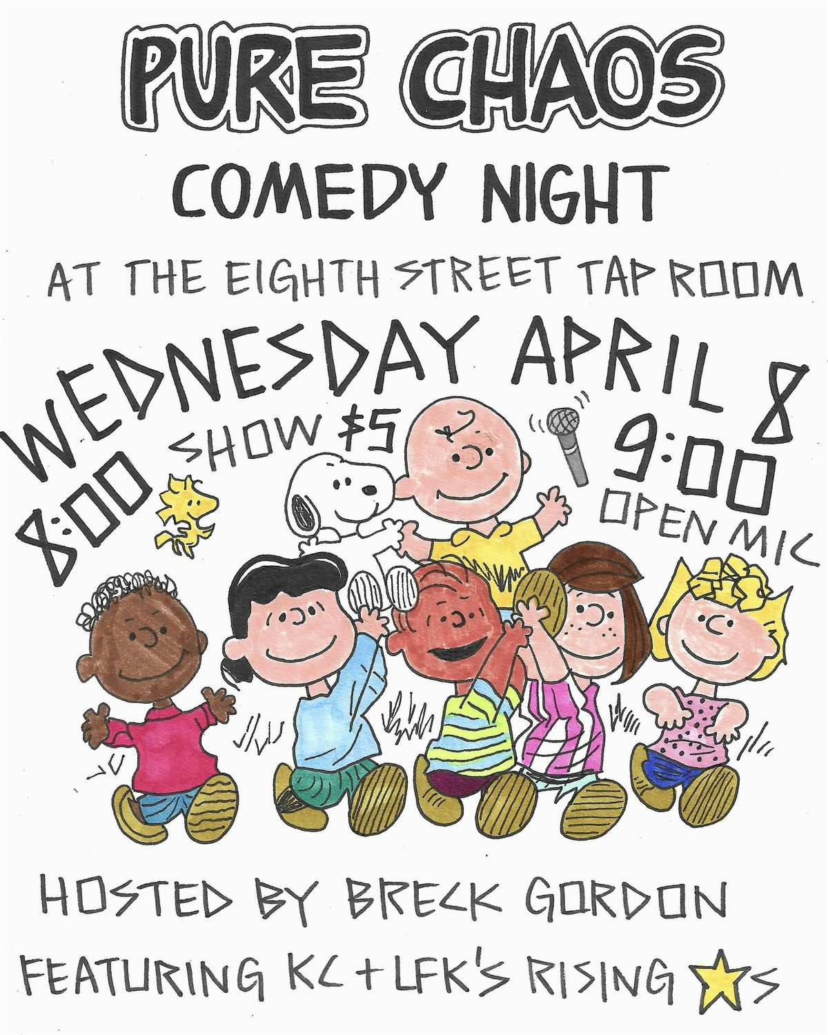 Join Pure Chaos in the basement of the Eighth Street Taproom for a night of laughs!