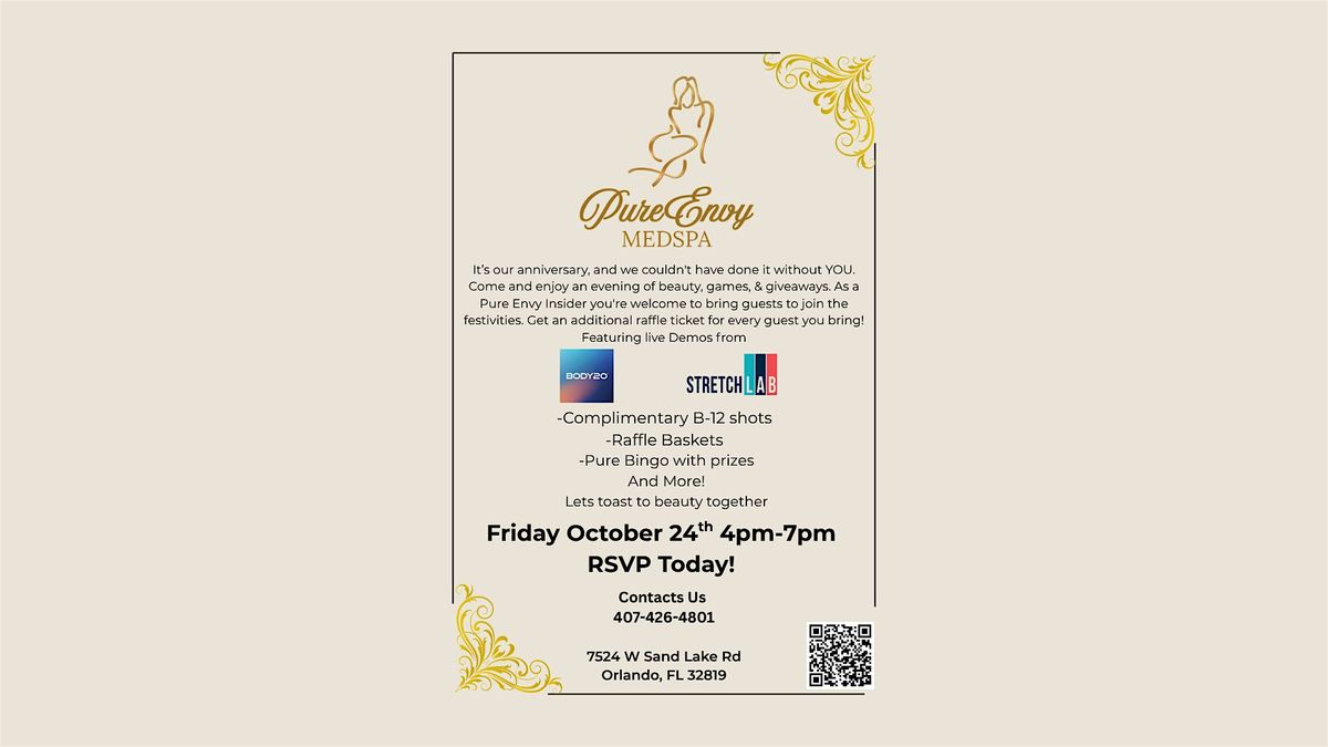 Join us on Friday, October 24th from 4PMβ7PM at Pure Envy Med Spa in Dr. Phillips, Orlando for an unforgettable evening of transformation, celebration, and self-care.