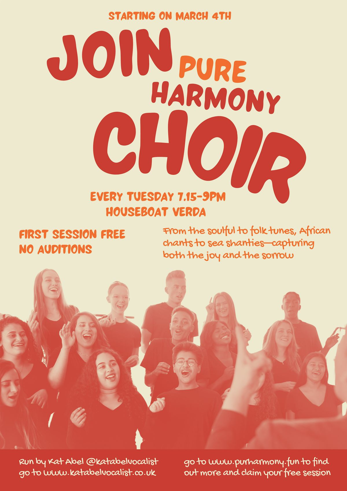 Brand-New Community Choir in Shoreham-by-Sea!Join a choir like no other—an eclectic mix of Alternative Pop, Folk, and World music, arrangements from artists like The Staves, Laura Mvula, Little Simz, Aloe Blacc, Mumford & Sons, Martha Tilston, and more.Led by an energetic and passionate choir leader, this is a space to connect with your community, explore your creativity, and boost your well-being—singing together has been scientifically proven to make you happier!The first session is free. Connect with us via WhatsApp or through our website.www.pureharmony.fun+447940368903