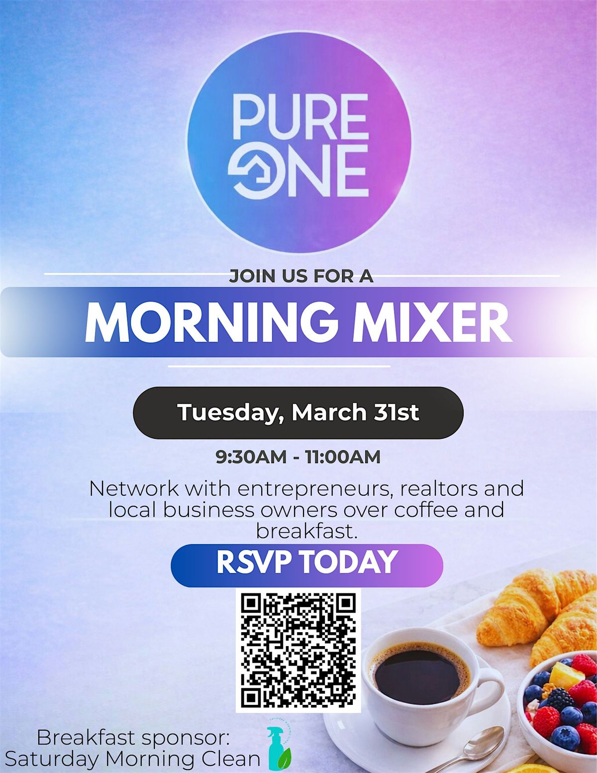 Join Pure One Realty for our Morning Mixer, a networking event designed to bring together entrepreneurs, realtors, and local business owners in the Gwinnett community. This relaxed breakfast gathering is the perfect opportunity to build relationships, exchange ideas, and grow your professional network over coffee and light breakfast.