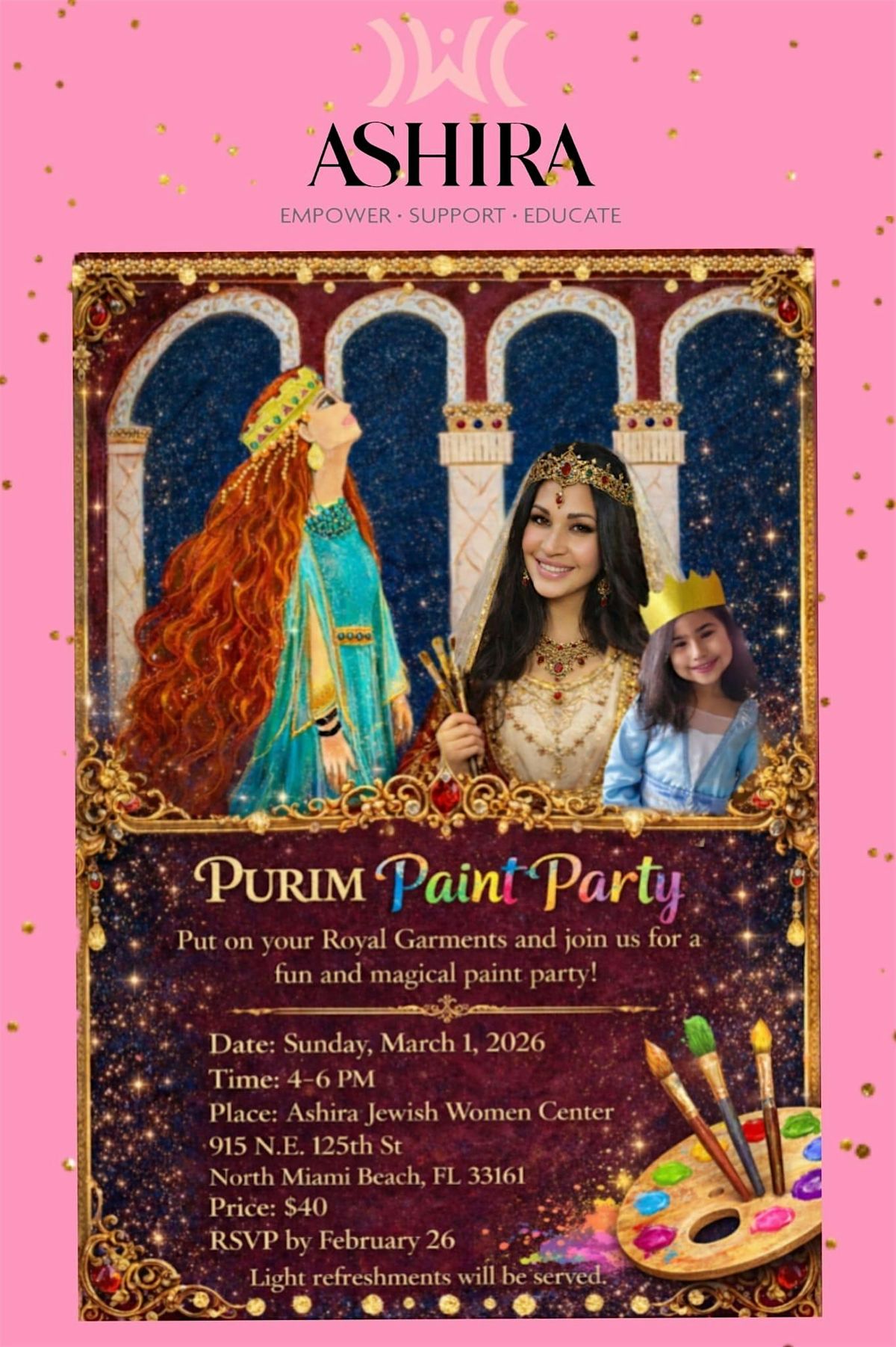 Step into a magical royal experience and celebrate Purim with creativity, joy, and sisterhood!Join us for a special Purim Paint Party wher