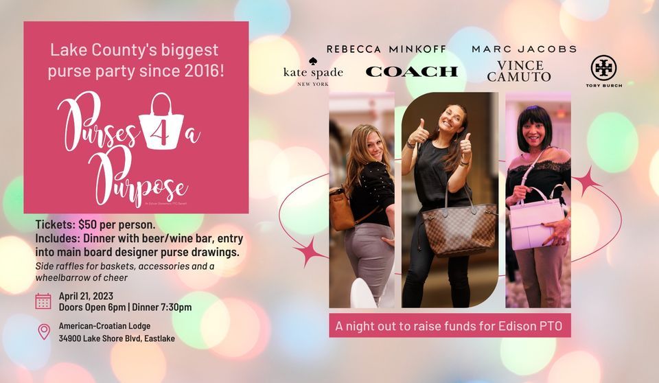 Join us for a night out to raise funds for the Edison PTO at our sixth Purses 4 a Purpose!Tickets: $50 per person. Your ticket price includes: