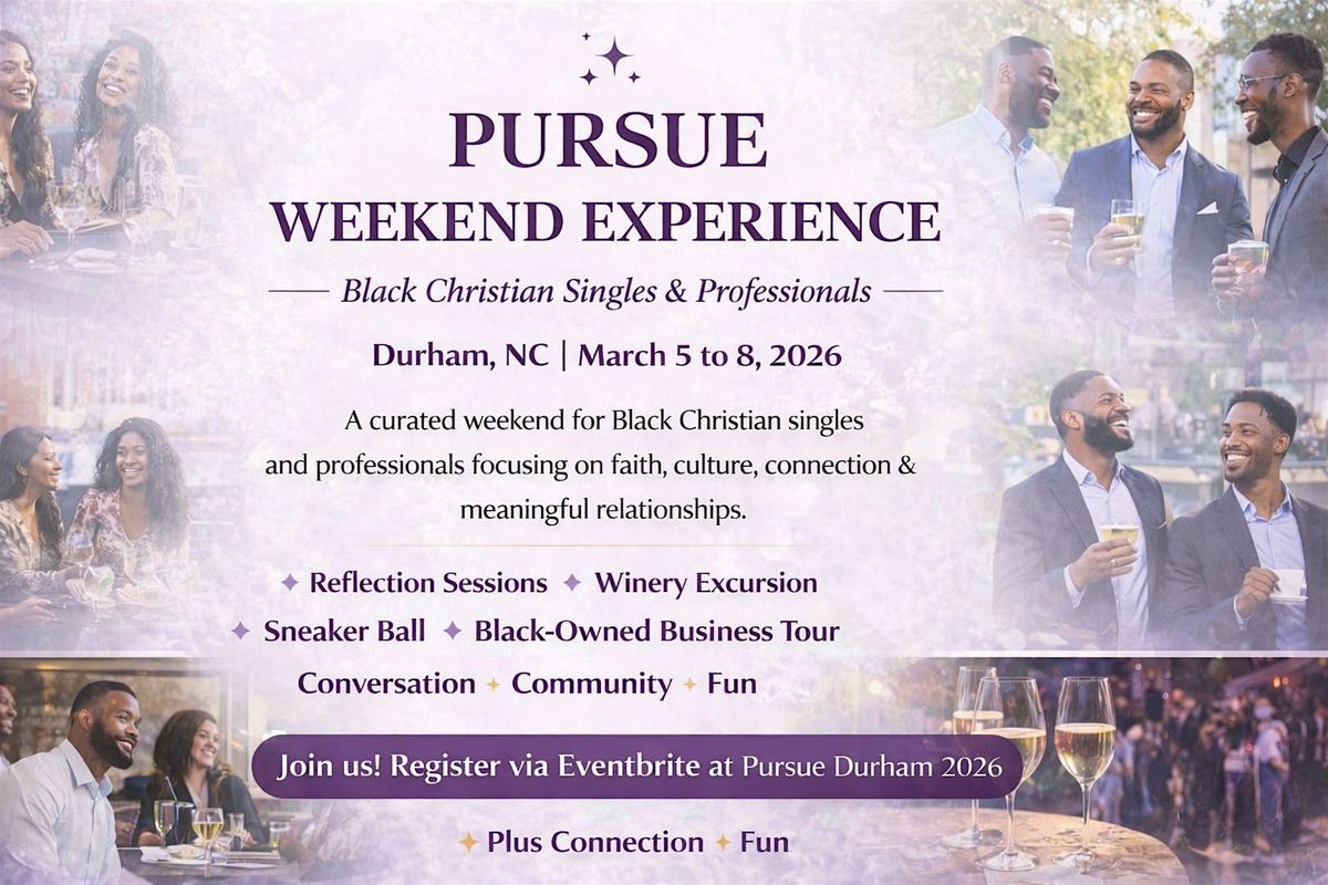 The Pursue Durham Weekend Experience is a 4-day, 3-night curated gathering for Black Christian singles and professionals seeking faith, fellowship, and meaningful connection. From honest relationship conversations and cultural exploration to a winery excursion and Sneaker Ball, this weekend blends purpose with celebration. Join us in Durham, NC from March 5–8, 2026 for a transformative social experience rooted in community and intention.