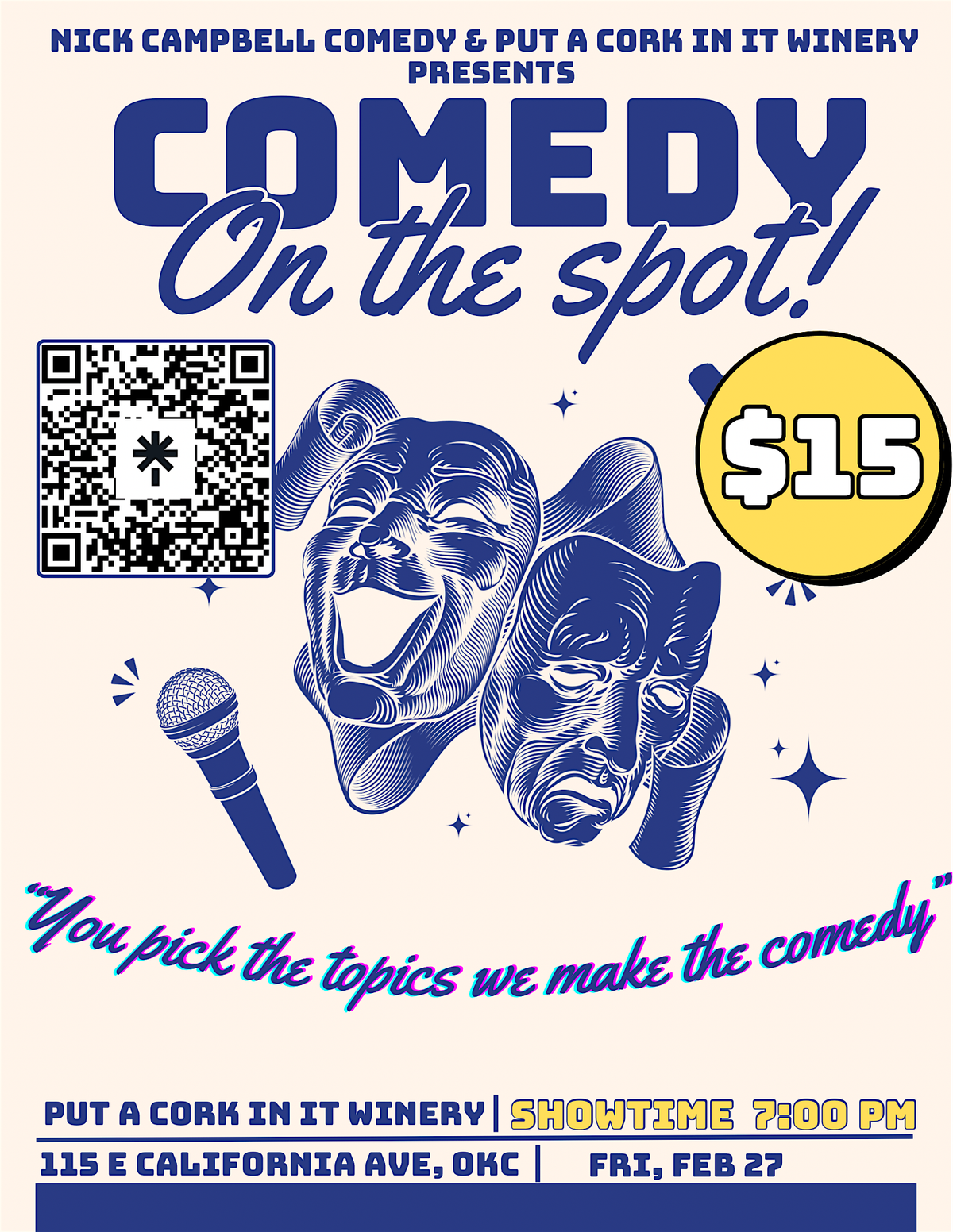 Come out to Put a Cork in It Winery in Bricktown for a one-of-a-kind night of stand-up comedy where the comics don’t come with a set list—the topics come from YOU, the audience! It’s spontaneous, unpredictable, and hilarious every time.