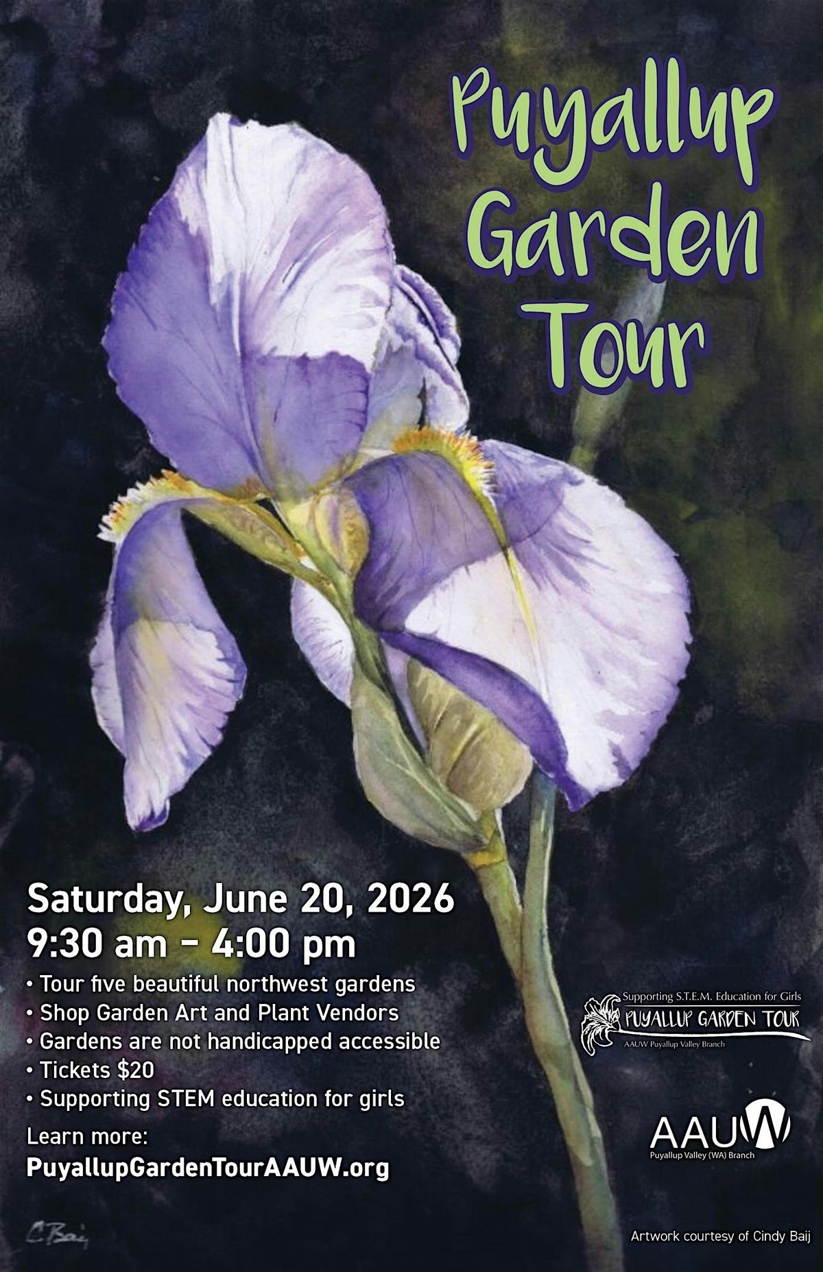 Redeem ticket between 9:30 and 3:00 on day of event only (June 20, 2026) at 2229 Tacoma Rd. E, Puyallup, WA 98371 to receive all garden tour location information.