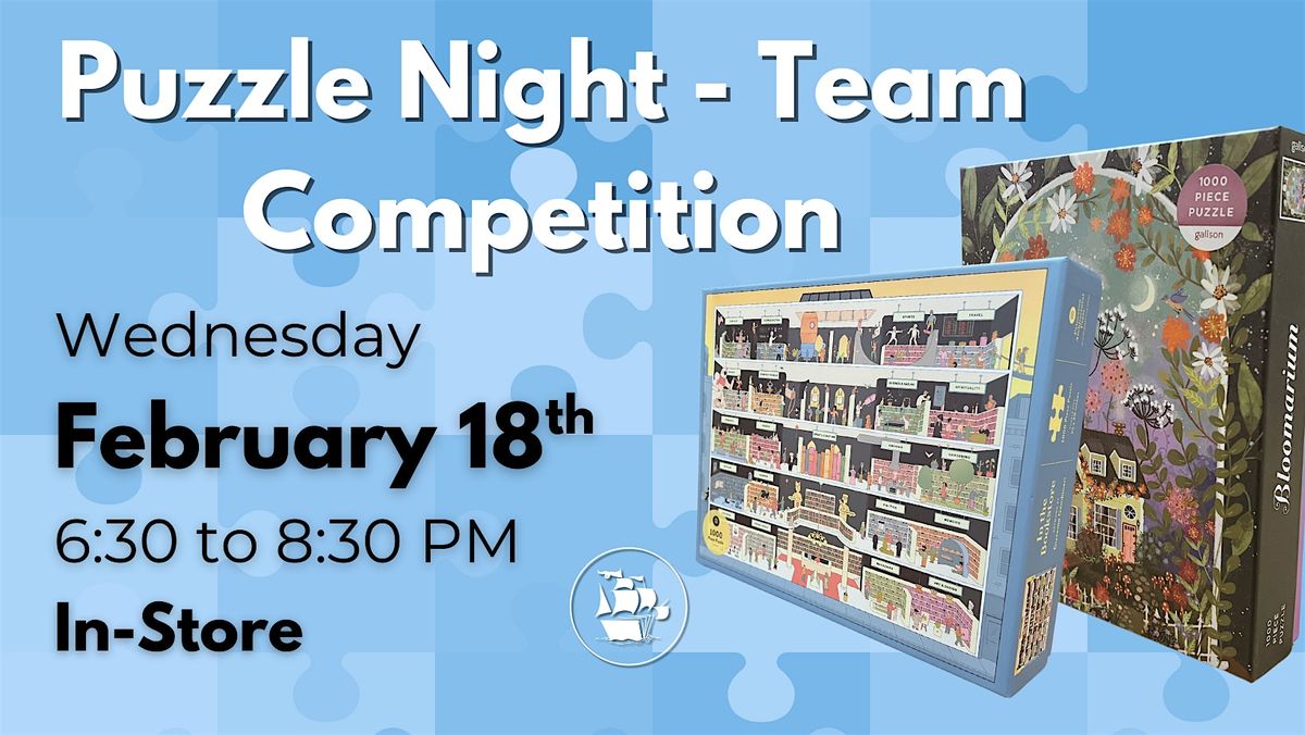 Get ready to put your brain to the test! Join us for the Puzzle Competition - Team Puzzlilng, an exciting in-person event where teamwork is the stars of the show. Whether you're a puzzle pro or just love a good challenge, this is your chance to shine with your crew. Bring 3 of your friends and compete against 6 other teams to be the first Jigsaw Puzzle Champs of 2026!