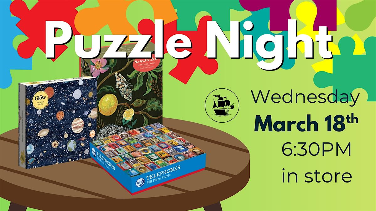 Join us for Puzzle Night at Rediscovered Books. This in-person event is the perfect opportunity to meet new people, chat about your favorite books, and put your puzzling skills to the test.