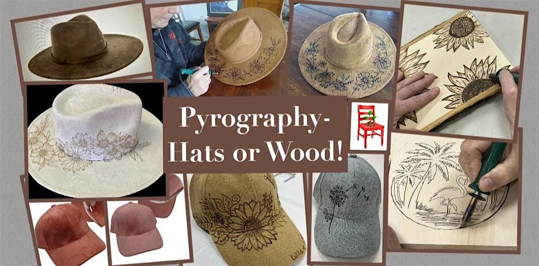 Wood burning is such an elegant art with endless possibilities! Now we're offering HAT burning too! An idea so simple can really make some gorgeous pieces! In this workshop we'll teach you the basics of pyrography art, with a handful of samples already made to inspire you! No Experience necessary! We'll provide a selection of subjects to choose from and have a laptop nearby to print more if you have come with a specific idea! All designs are traceable! Feel free to bring your own picture too, we'll show you how easy it is to transfer your subject onto your hat or live-edge wood plank!