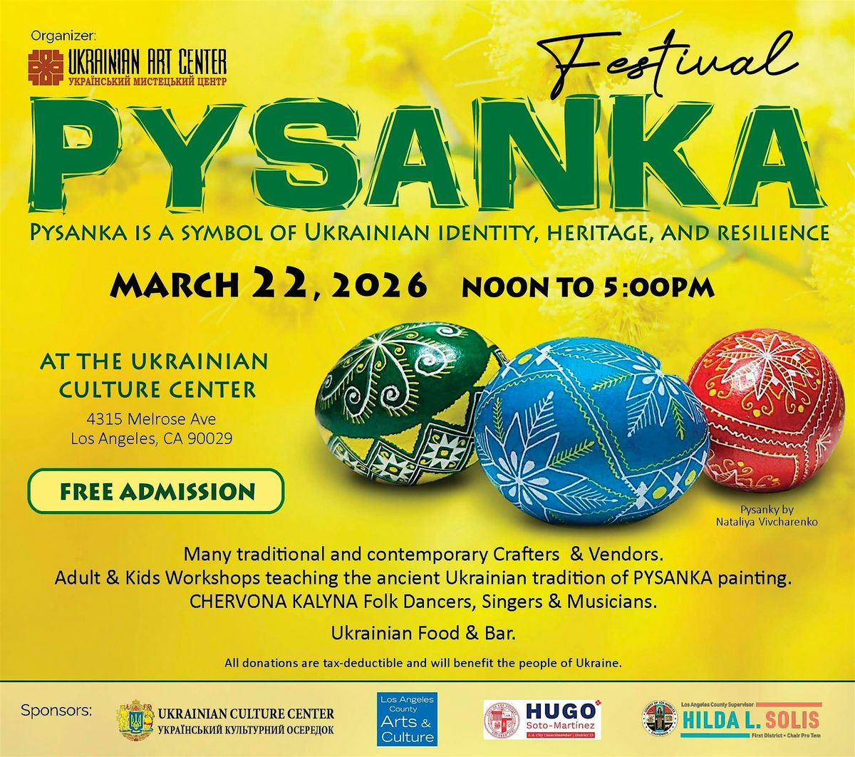 Pysanka Festival is a celebration of Easter through the prism of Ukrainian culture. It is an event for the whole family. Come enjoy workshops, vendors offering unique merchandise, and traditional Ukrainian food, along with the festive, bustling atmosphere of the Ukrainian Fair. Free admission and free parking.
