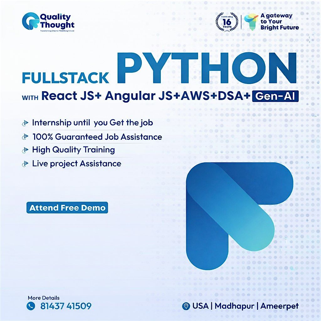 Welcome to the FREE DEMO at ! Join us on February 17, 2026 at 10:00 AM (Asia/Kolkata) to get a sneak peek into our Python course. Whether you're a beginner or looking to enhance your skills, this demo is perfect for all. Don't miss this opportunity to explore the world of Python with us. See you there!