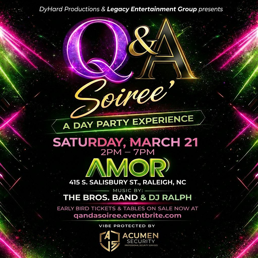 Q & A Soiree' / Day Party- Live Band & Live DJ, Patio ~ Downtown Raleigh